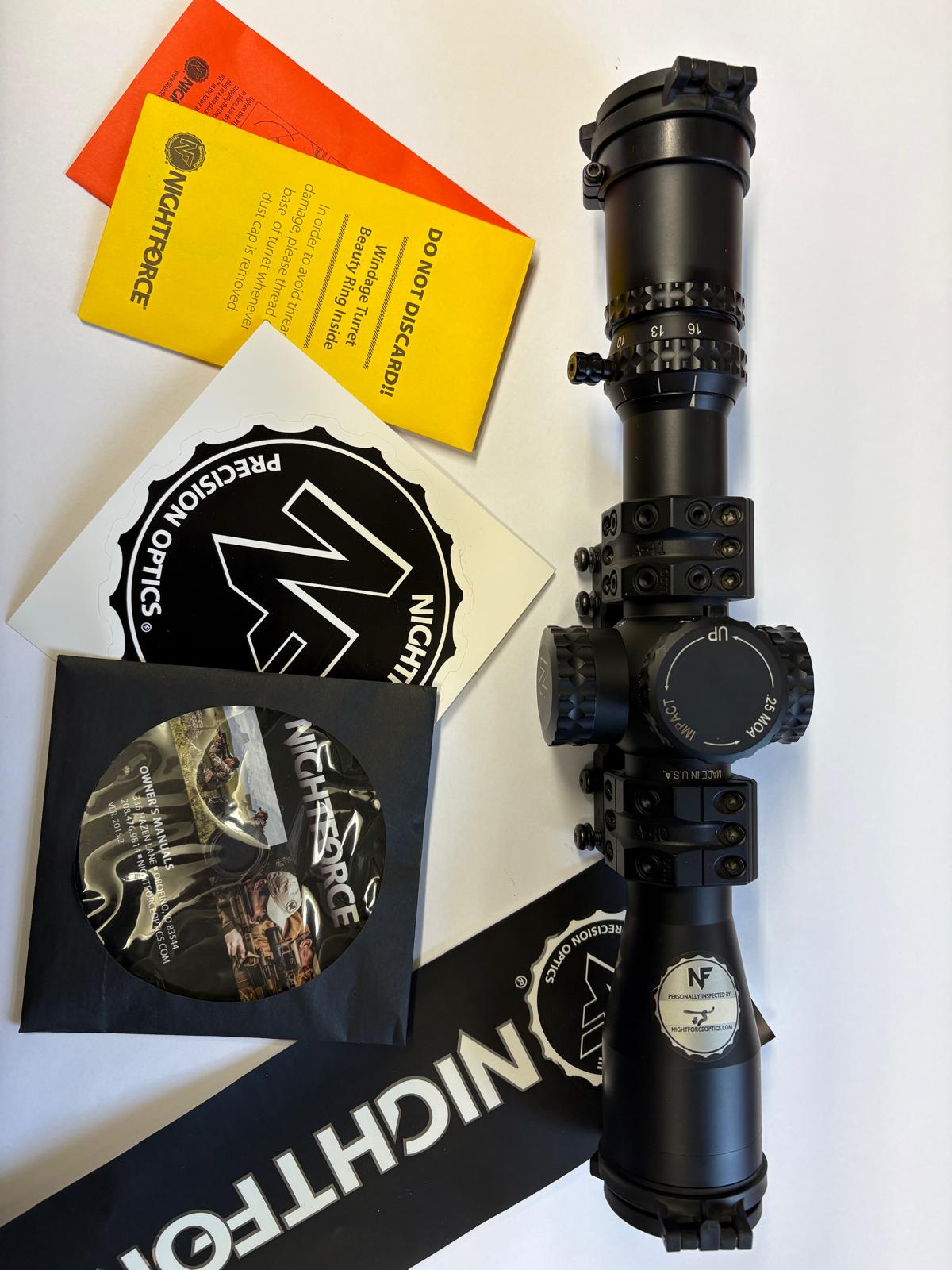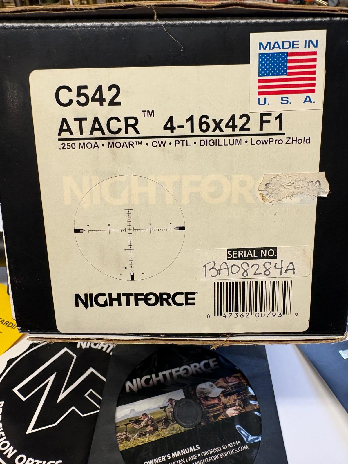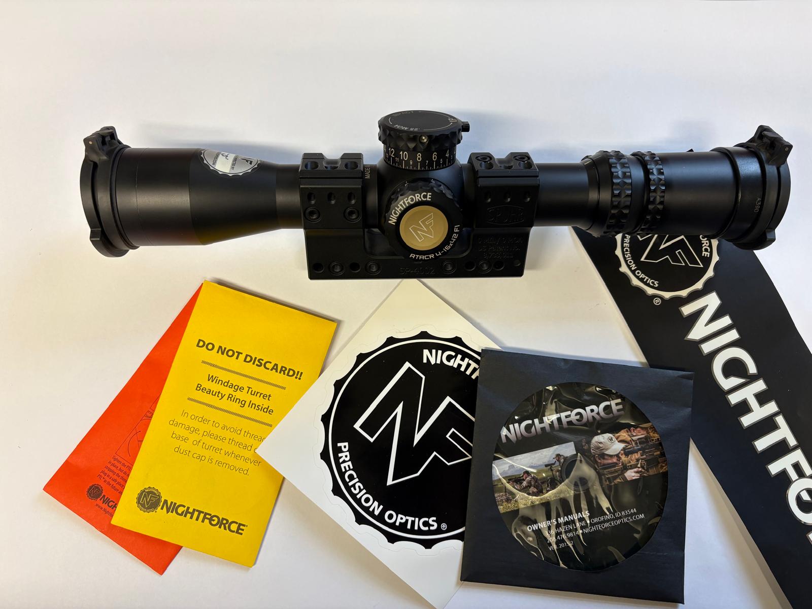 Nightforce ATACR 6-16-42 Digillum , choice of Red or Green illuminated ret , in .250 MOA , Glass is fantastic for a 16 power scope , Box and book but the Spuhr mount as shown in the photos below is NOT included , slight discolour on the elevation turret word "Impact", other than that in excellent condition and perfect working order looking for £1875